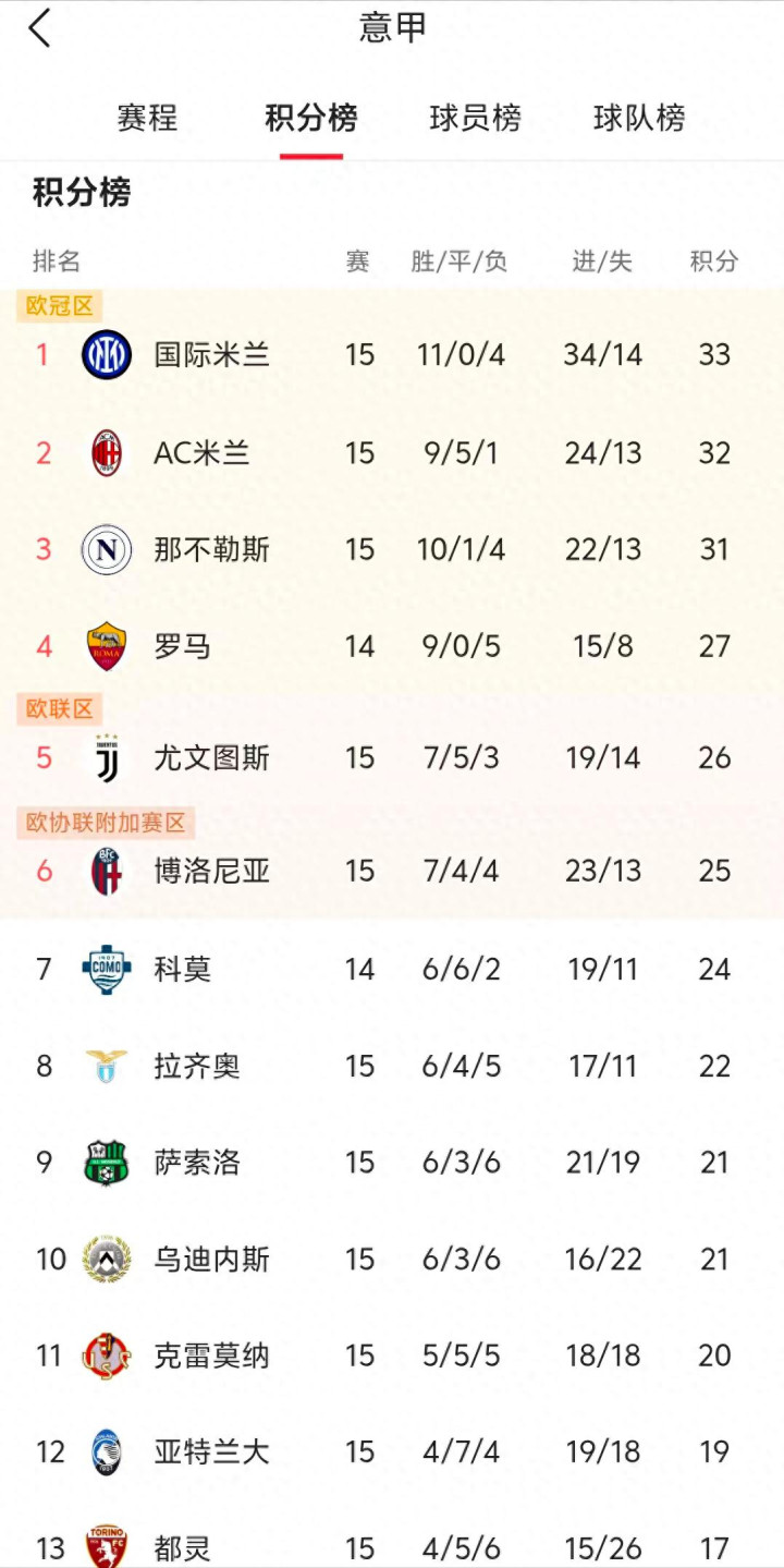 北京时间12月15日,当欧洲的传统豪门国际米兰以场均一个球的失球率做到了领跑意甲积分榜后,对于国米在意甲的成功,有媒体大V认为,这个赛季的国米,完全是效仿中超的冠军上海海港,面对强队清一色的输球,面对弱旅却疯狂的进球,15场比赛输了4场还能领跑意甲,真的和中超冠军上海海港的夺冠轨迹如出一辙。